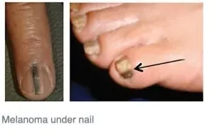 Dark streakIf a fingernail or toenail has a new or changing dark streak, it’s time to see a dermatologist for a skin cancer check. That dark streak could be melanoma, the most serious type of skin cancer.