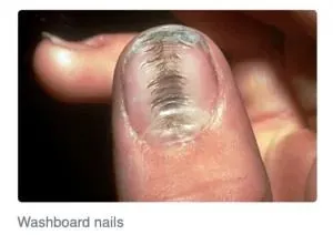 Washboard nailsIf you have grooves and ridges in the center of your thumb that look like the ones shown in this picture, you may have developed a habit of picking at (or pushing back) the cuticles on your thumbnails. Many people are unaware that they do this.