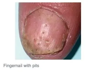 Pitted nailsIf you have dents in your nails that look like they were made by an icepick, this could be a sign that you have a disease that affects your entire body.