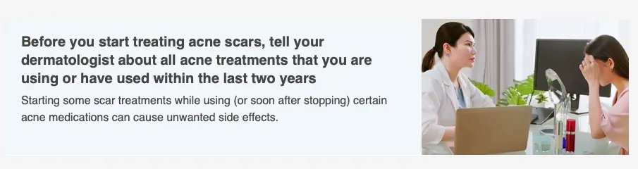 If you and your dermatologist decide that treatment is right for you, your dermatologist will create a treatment plan tailored to your needs. Before creating this plan, your dermatologist will consider the type of acne scars you have, how many scars you have, your age and skin tone, your budget, and many other considerations.