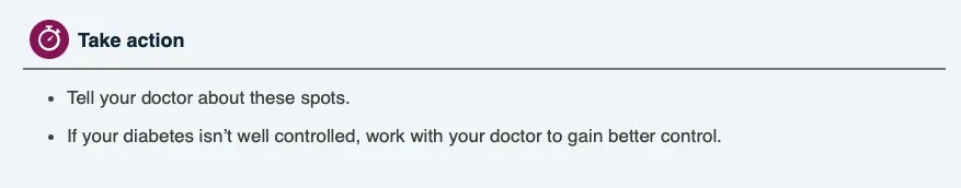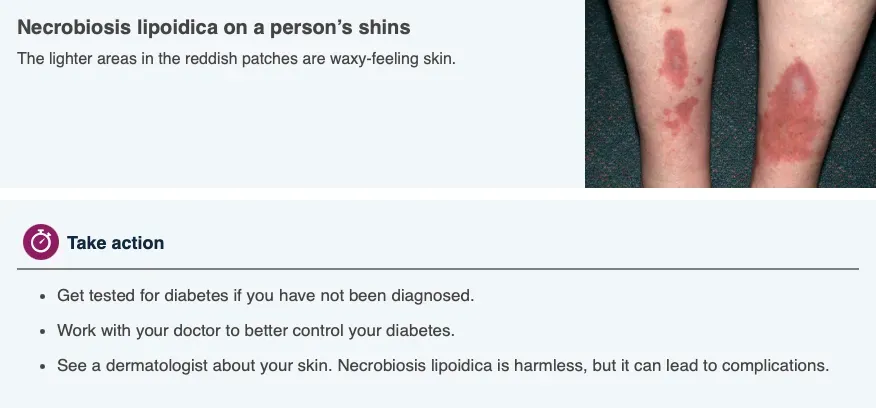 While these spots are harmless, anyone who develops them and hasn’t been diagnosed with diabetes should be tested.