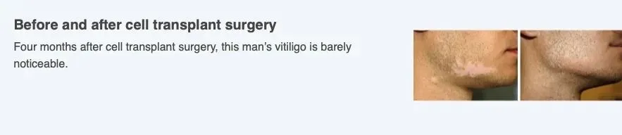 Silpa-Archa N, Griffith JL, et al. “Long-term follow-up of patients undergoing autologous noncultured melanocyte-keratinocyte transplantation for vitiligo and other leukodermas.” J Am Acad Dermatol. 2017 Aug;77(2):318-27.